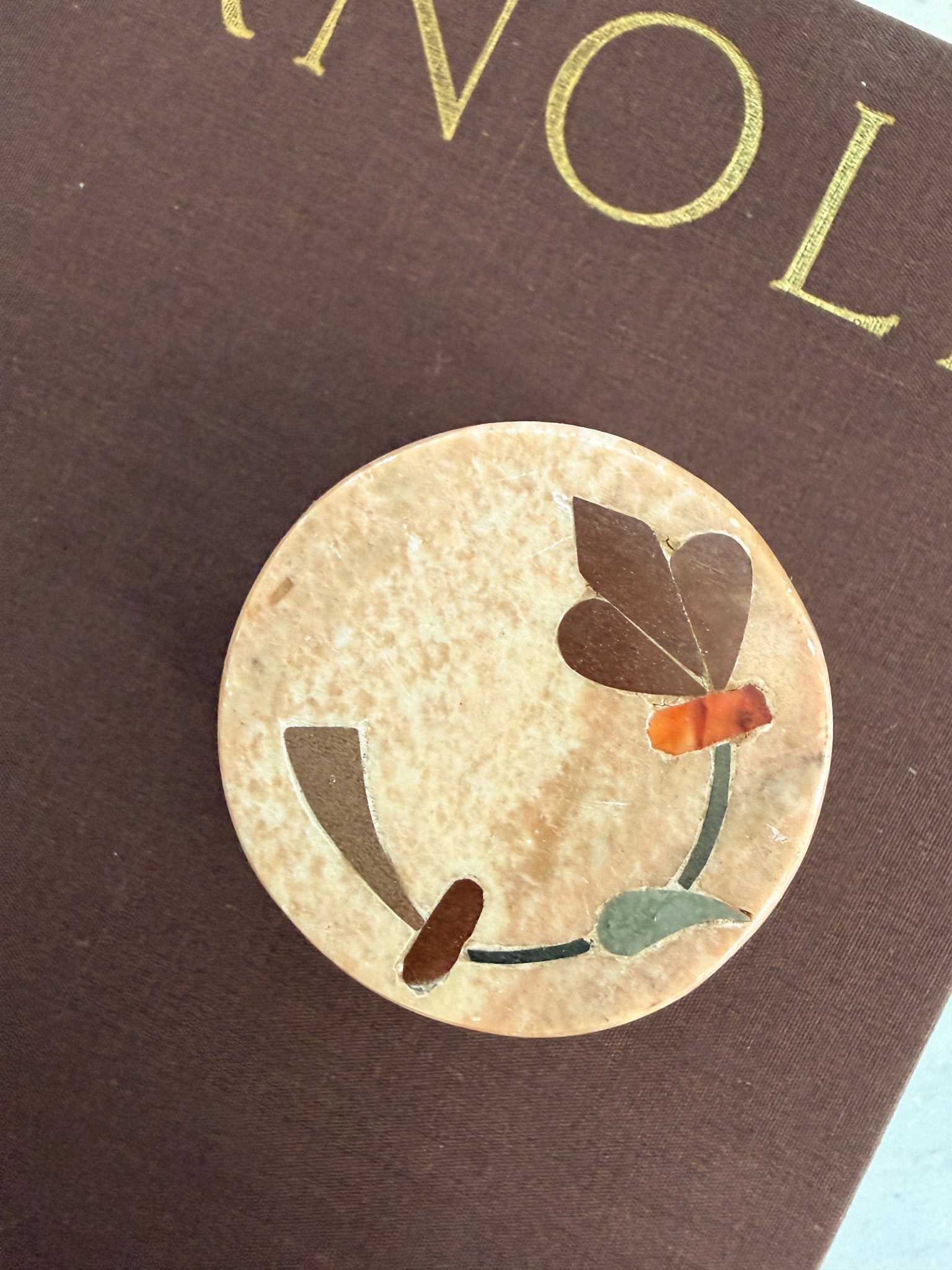Carved Soapstone Trinket Box with Mother of Pearl Inlay